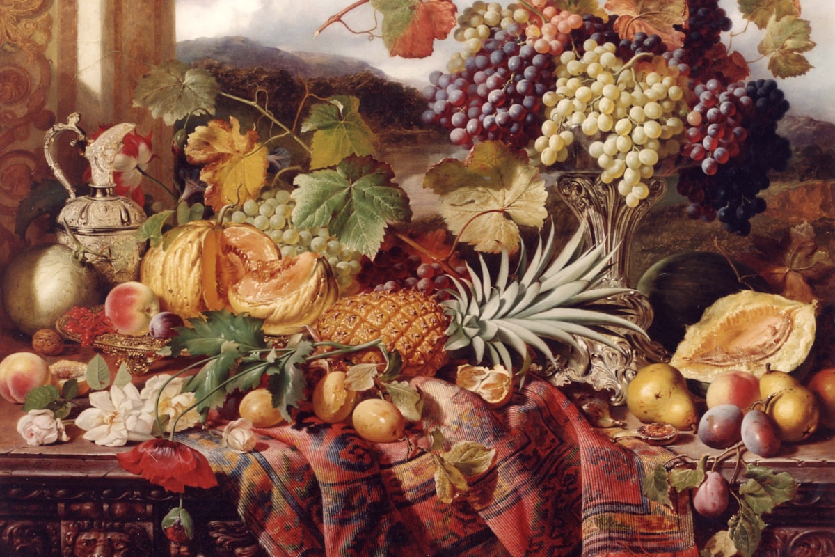 William Duffield was a still-life painter who was born in Bath in 1816. At first, a self-taught artist, Duffield moved to London and studied under George Lance. He also studied in Antwerp for two years with Baron Wappers. He eventually returned to Bath and specialised in painting fruit, vegetables, meat and dead game. He occasionally included figures, mostly portraits of his wife and son. He exhibited only a few works at the Royal Academy and British Institute, preferring the Society of British Artists in Suffolk Street, where he exhibited 38 works. Duffield died suddenly at the age of 47 at the height of his powers. His wife, Mary Ann Rosenberg, whom he married in 1850, was a flower painter and they presumably worked together. William L. Duffield, a landscape and figure painter, who exhibited very few works, was probably his son.